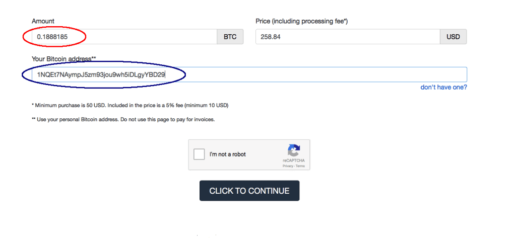 Important: The amount and the bitcoin address must be the same as the previous page!